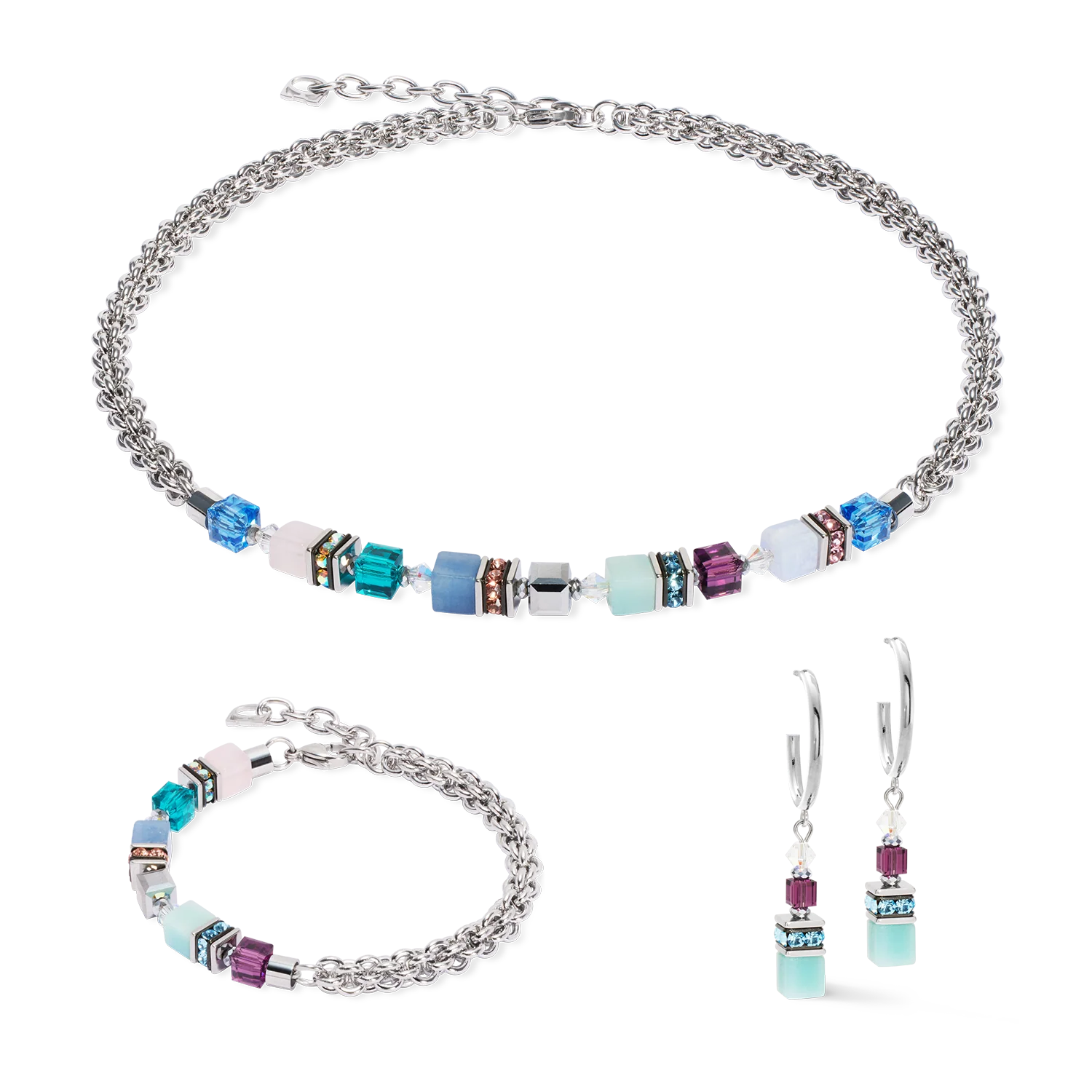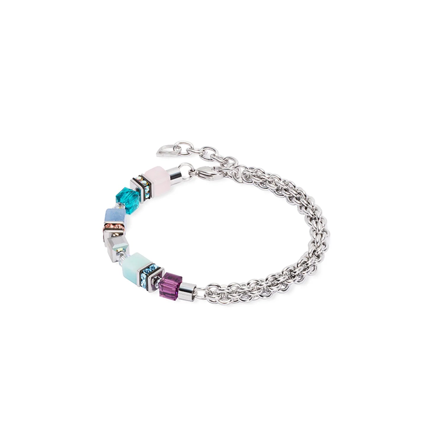 Coeur De Lion GeoCube Fusion Silver Chain, Soft Blue & Turquoise Bracelet