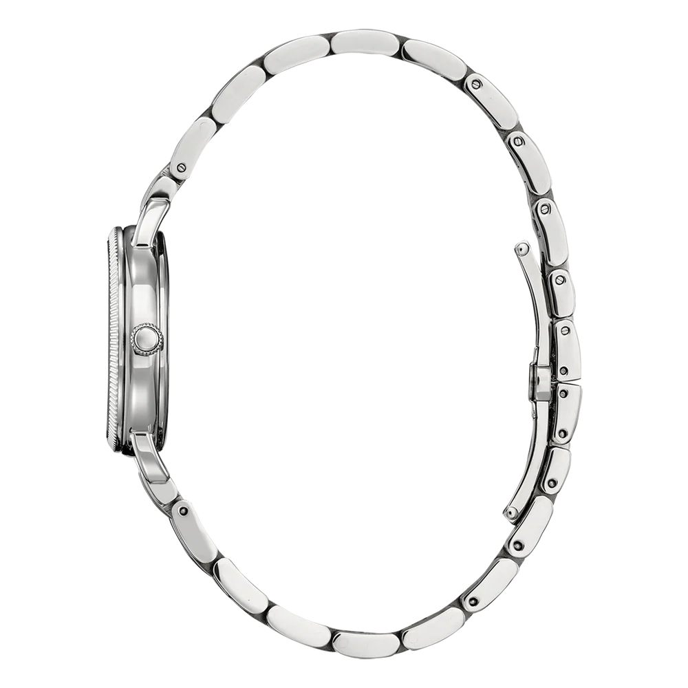 True grace transcends trends and fads, and can be appreciated across generations. This stunning piece epitomises that notion with the additional benefit of intelligent technology, making a watch that is all about stylish performance. Powered by Eco-Drive, energy is obtained sustainably via any light source, providing ceaseless, reliable accuracy. The subtle texture of the crisp white dial with roman numeral indices framed by a stainless steel bezel defines elegance and, combined with the silver toned band, makes for a beautiful and versatile watch.