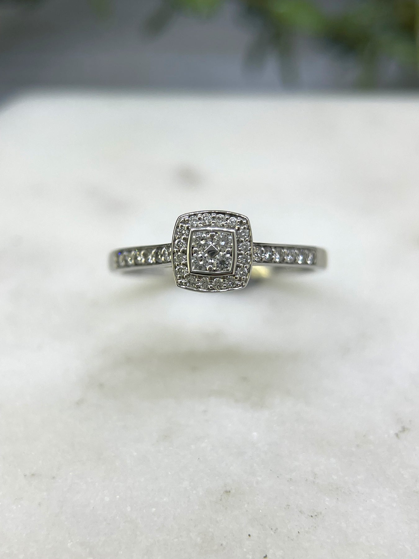 18ct White gold diamond cluster engagement ring