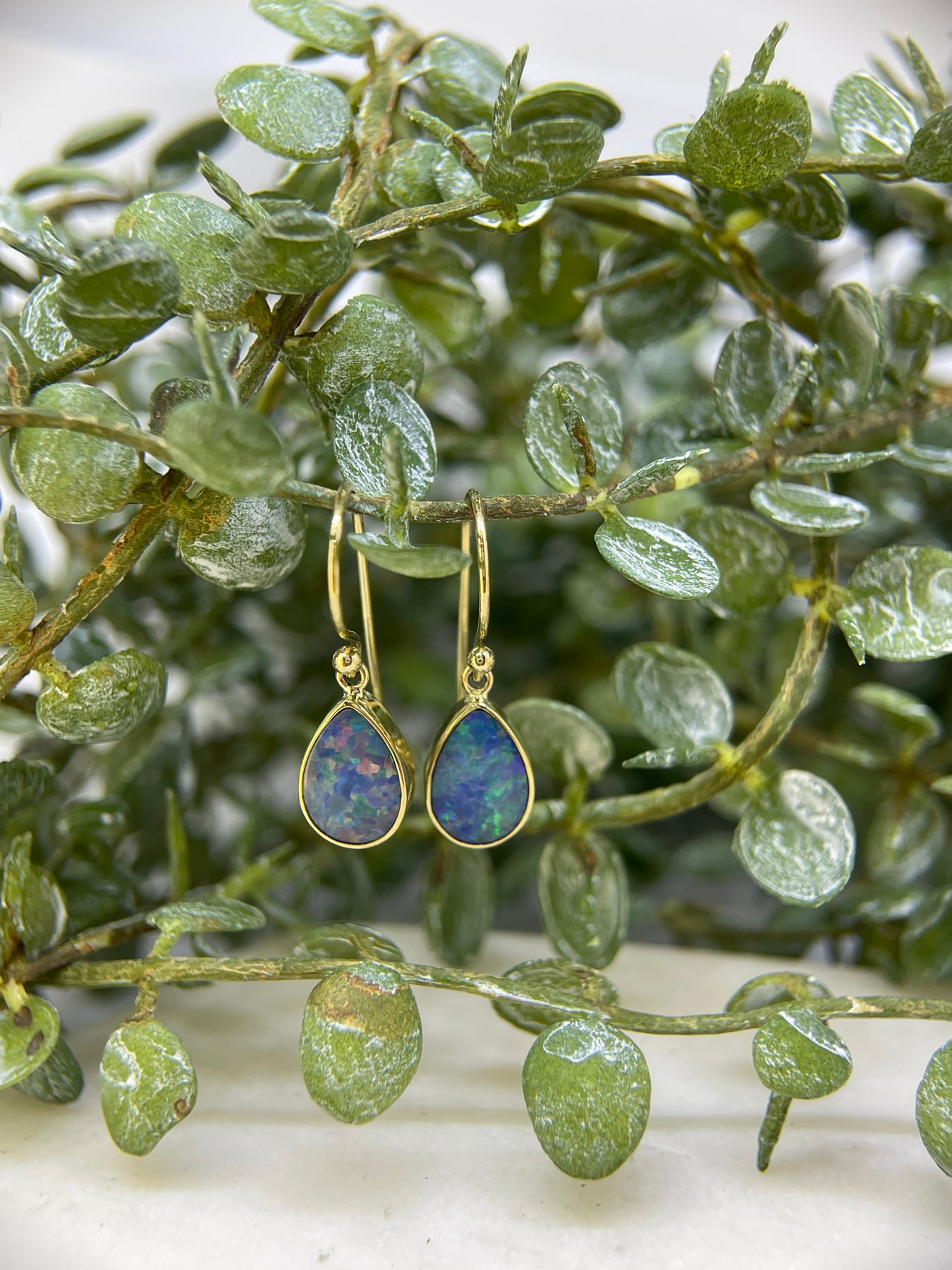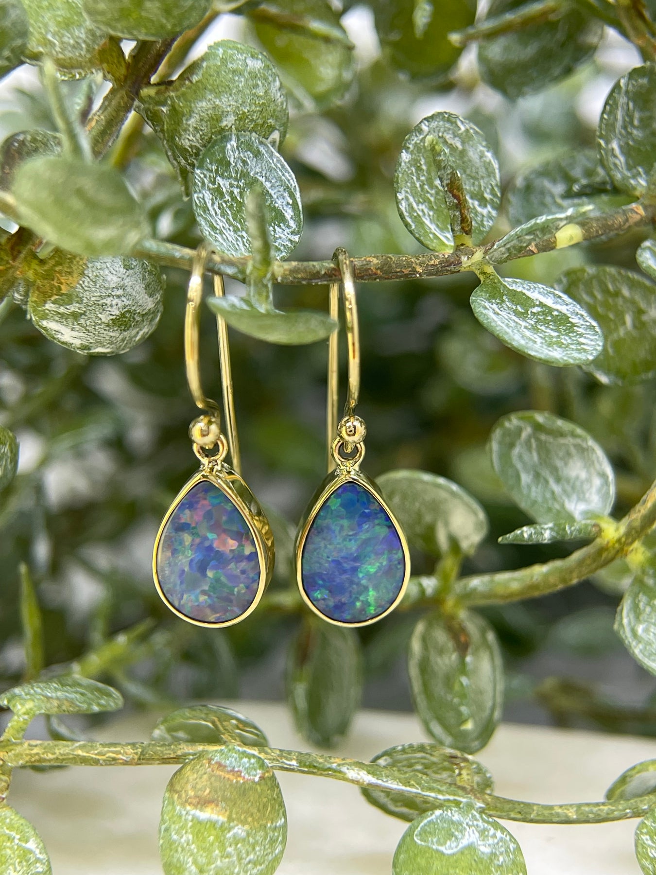 9ct Yellow gold Teardrop/Pear shaped Opal Earrings