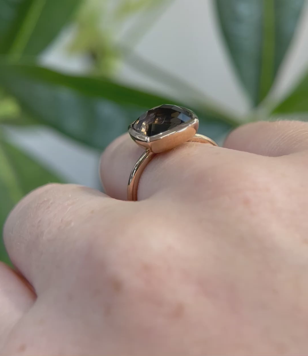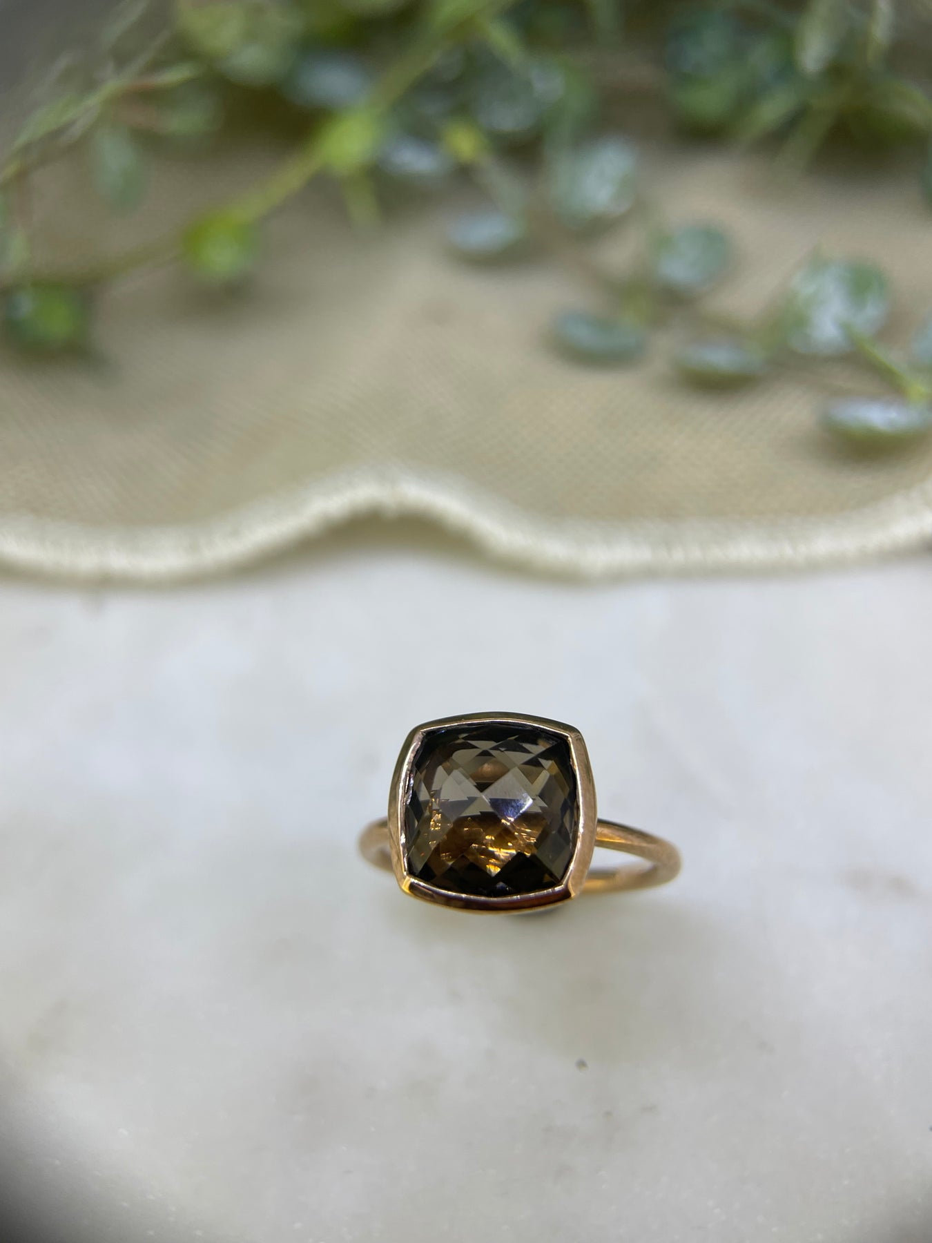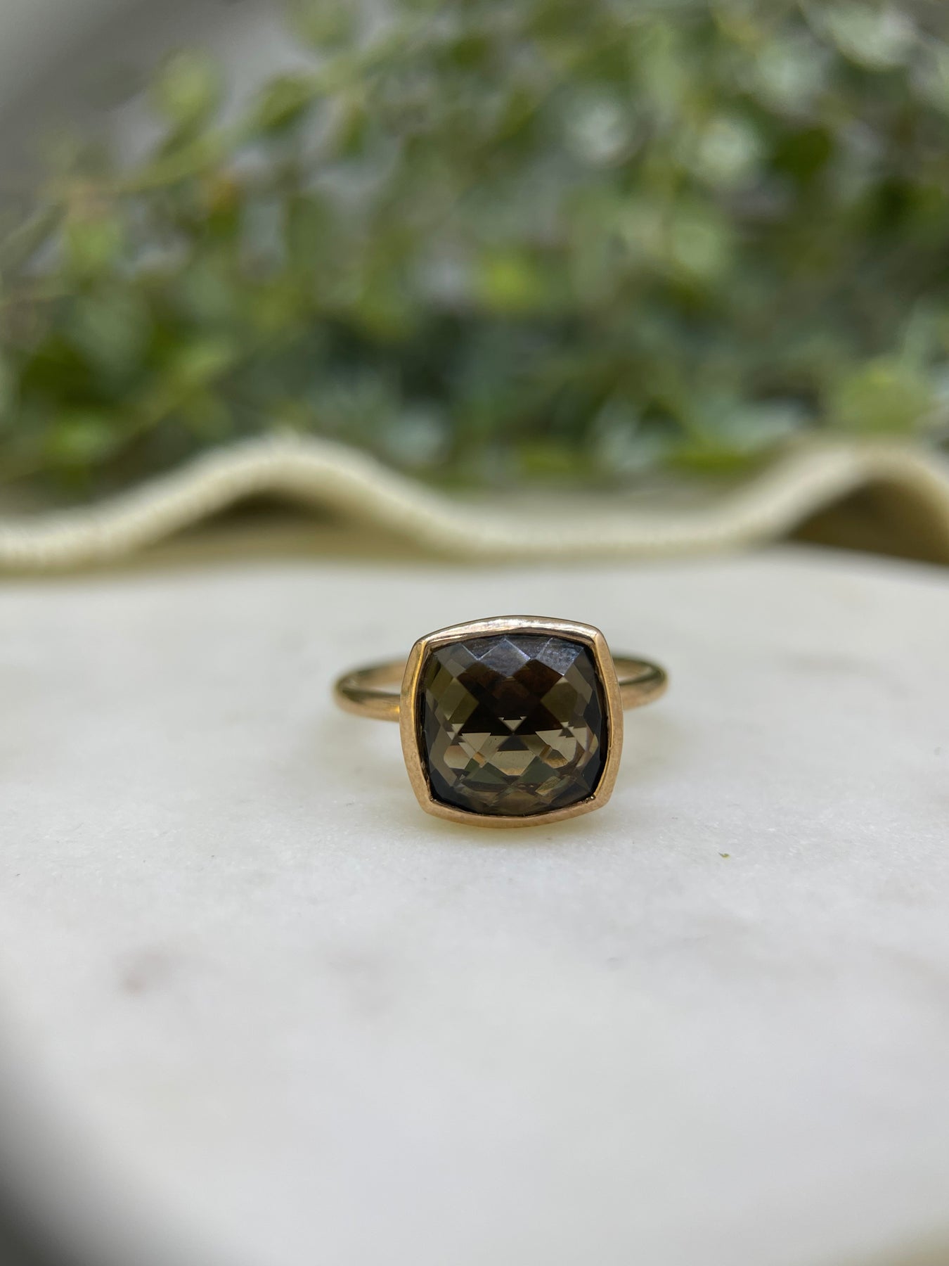 9ct Rose Gold bezel set squared checker cut smokey quartz ring