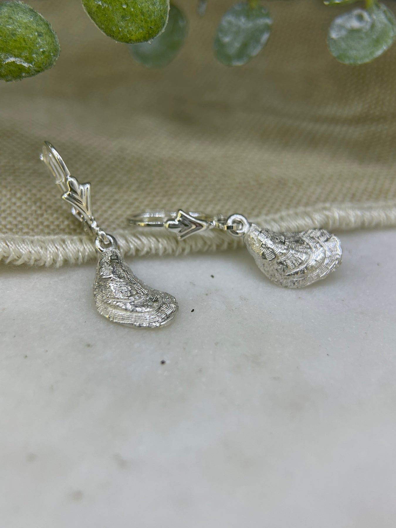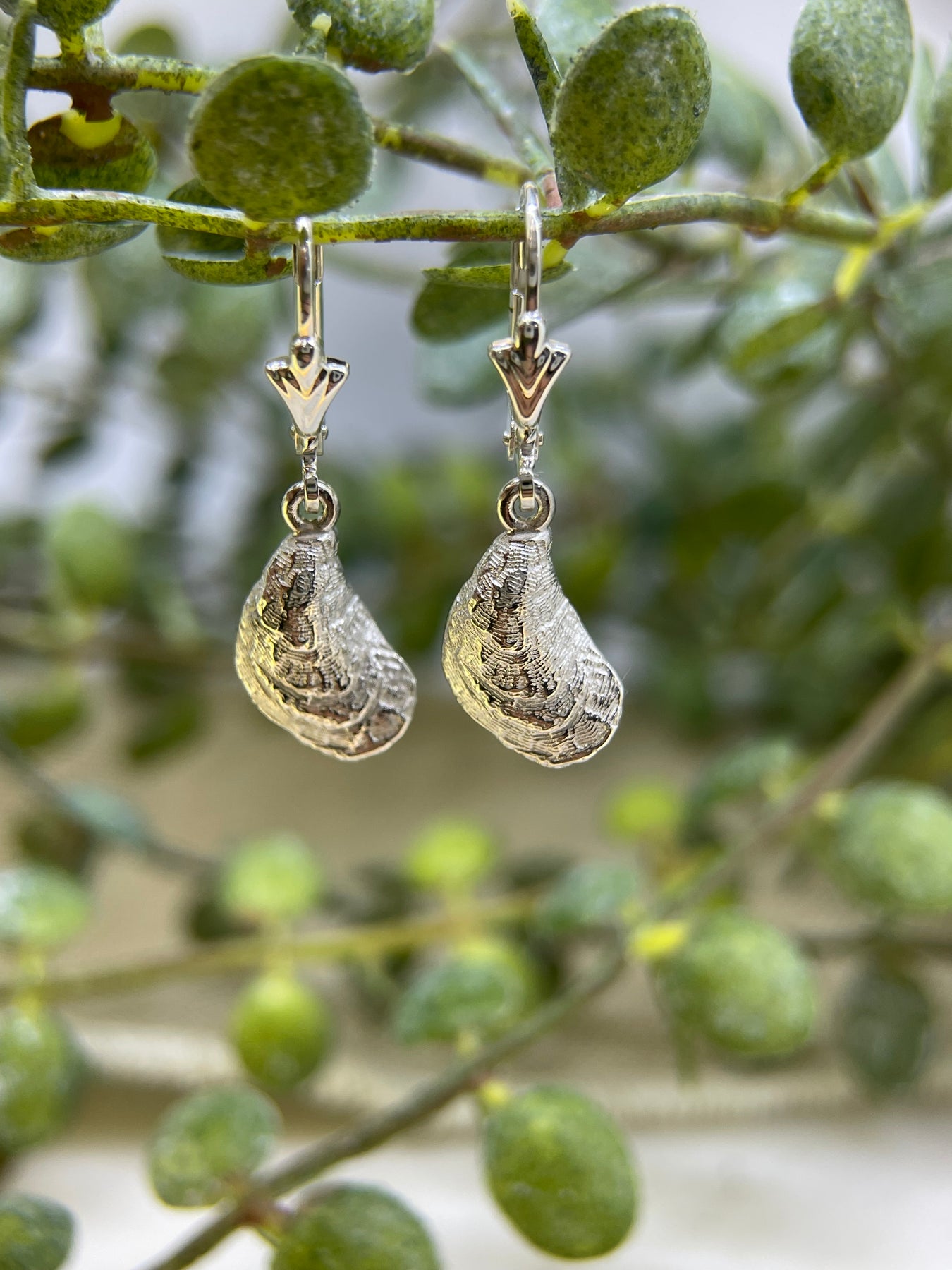 Silver Oyster Drop Earrings